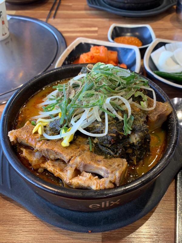 이 음식은 감자탕으로 보입니다. 감자탕은 주로 돼지 등뼈, 감자, 우거지, 콩나물 등을 넣어 끓인 한국 전통 음식입니다. 다음은 감자탕의 일반적인 영양 성분과 건강에 미치는 영향을 분석한 것입니다. ### 영양 성분 (1인분 기준, 약 500g) - **칼로리**: 약 500-600 kcal - **단백질**: 30-40g - **지방**: 20-30g - **탄수화물**: 30-40g - **나트륨**: 1000mg 이상 (조리 방법에 따라 다름) ### 건강에 미치는 영향 - **단백질 공급**: 돼지 등뼈와 고기는 양질의 단백질을 제공합니다. 근육 형성과 유지에 도움이 됩니다. - **비타민과 미네랄**: 다양한 채소가 들어가 있어 비타민과 미네랄 섭취에 좋습니다. - **나트륨 주의**: 국물 요리 특성상 나트륨 함량이 높을 수 있으니 주의가 필요합니다. ### 건강한 식단 팁 1. **채소 추가**: 더 많은 채소를 추가하여 영양 균형을 맞추세요. 2. **국물 섭취 조절**: 나트륨 섭취를 줄이기 위해 국물 섭취를 조절하세요. 3. **밥과 함께**: 밥과 함께 먹으면 포만감을 높이고 균형 잡힌 식사를 할 수 있습니다. 4. **저염 간장 사용**: 조리 시 저염 간장을 사용하여 나트륨 섭취를 줄이세요. 이러한 방법으로 감자탕을 보다 건강하게 즐길 수 있습니다.